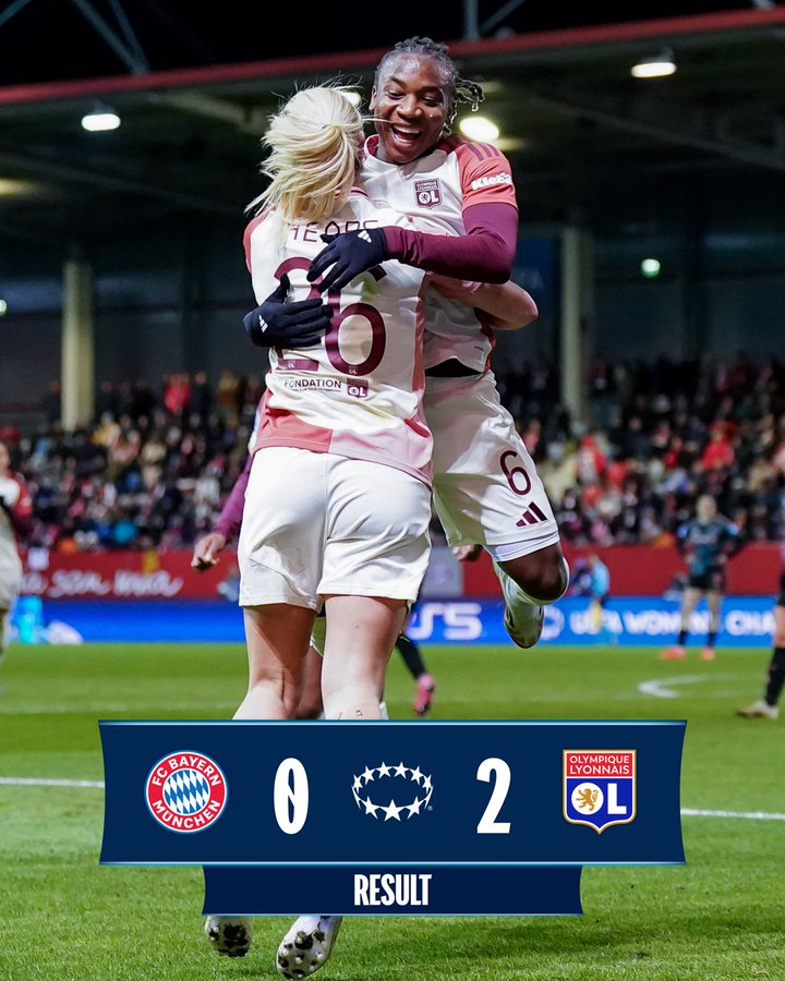 Lyon Women proved why they are one of the most dominant teams in women’s football with a clinical 2-0 victory over Bayern Munich Women in their UEFA Women’s Champions League clash. The French giants delivered a solid performance away from home, silencing Bayern with goals from Tabitha Chawinga and Désirée Doumornay.