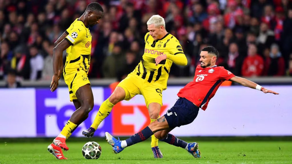 Serhou Guirassy was instrumental in Dortmund’s attacking efforts, setting up Pascal Groß for a shot that was heroically denied by Lille’s Lucas Chevalier and Alexsandro on the goal line. The young goalkeeper produced more heroics, notably a miraculous double save to deny Julian Brandt’s header and Guirassy’s follow-up attempt. The tension continued as Groß hit the crossbar, leaving Dortmund frustrated heading into halftime.