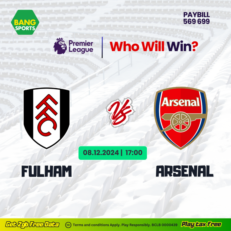 The Arsenal vs. Fulham showdown promises drama, passion, and goals. For Kenyan football fans, it’s another weekend of intense Premier League action to enjoy. Whether you’re rooting for the Gunners or the Cottagers, the stakes are high, and the entertainment is guaranteed. Don’t forget to place your bets on BangSports to make the most of this thrilling encounter!