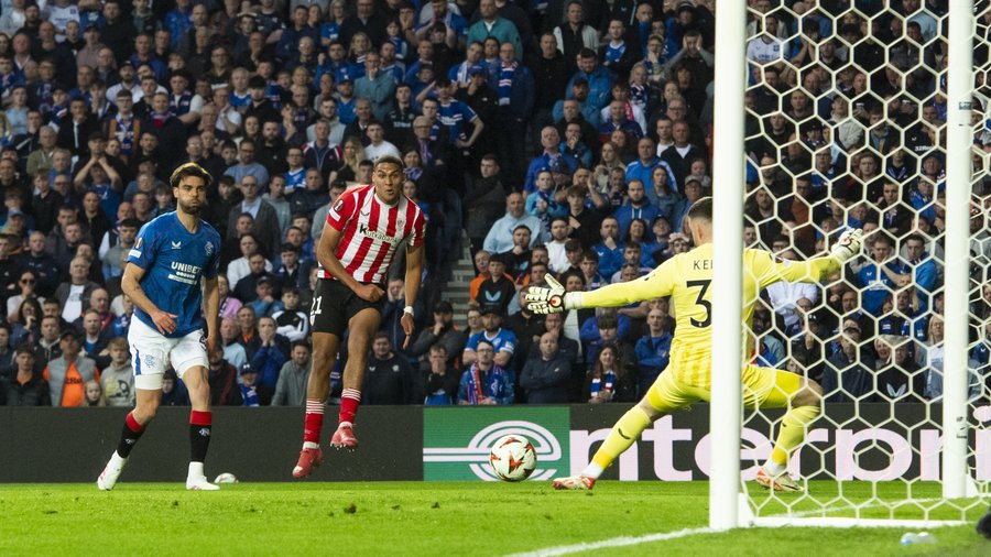 He denied Maroan Sannadi with a fingertip save before calmly collecting Oihan Sancet’s powerful header. Rangers’ compact defence frustrated the visitors, who struggled to capitalise on their extra man for most of the night.