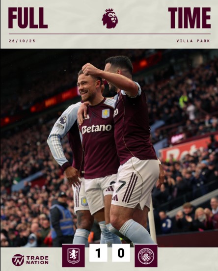 A stunning first-half strike from Matty Cash handed Aston Villa a famous 1–0 victory over Manchester City at Villa Park. The result sees Pep Guardiola’s side drop to fifth in the Premier League standings, while Unai Emery’s Villa climb to eighth, continuing their impressive home form this season.