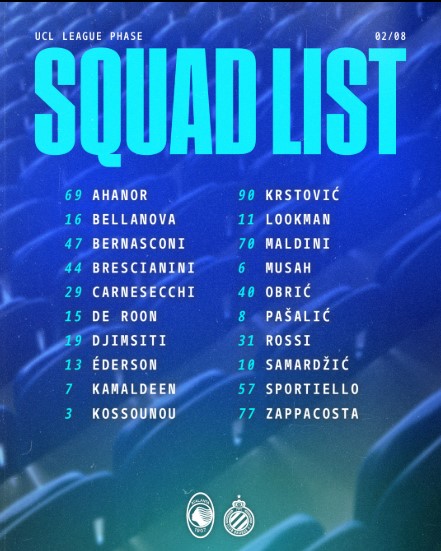 • Atalanta’s Attack vs Brugge’s Defense: Players like Ademola Lookman and Teun Koopmeiners will need to break down a Brugge defense that showed resilience in their opener.