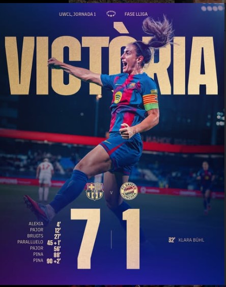 • Barcelona Femení 7–1 Bayern Munich — a record-breaking win in the UWCL group stage.