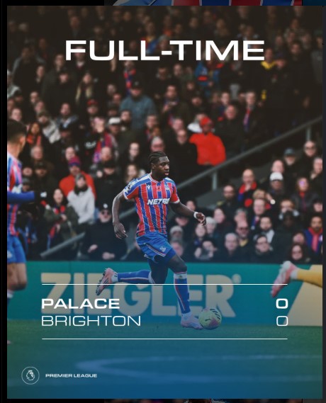 - Match ends 0–0, keeping Palace 10th and Brighton 11th