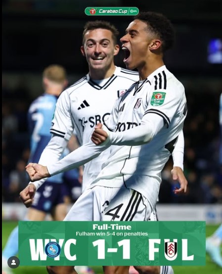 - Final Score: Wycombe 1-1 Fulham (Fulham win 5-4 on penalties)