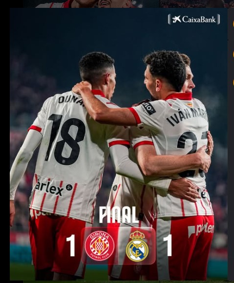 Real Madrid were held to a 1–1 draw against Girona, a result that dramatically reshapes the La Liga table and sends Barcelona to the top. Despite a strong individual season from their star forward, Madrid slipped from first place after a tense night in Catalonia.