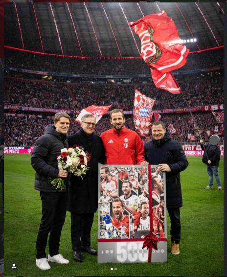 Bayern Munich honoured Harry Kane in a special pre-match ceremony at the Allianz Arena, recognising his remarkable milestone of 500 career goals at club level. The tribute included a presentation and celebration of his incredible journey before fans and club officials.