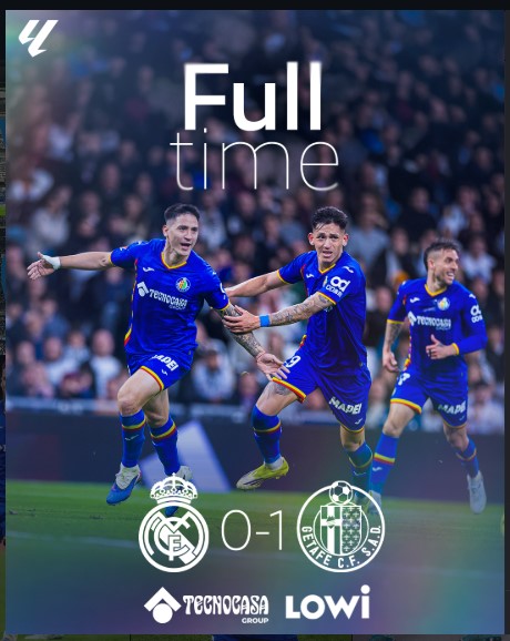 Getafe CF stunned Real Madrid at the Santiago Bernabéu with a narrow but historic 1–0 victory. The decisive moment came in the 39th minute, when Mauro Satriano found the back of the net, securing all three points for the visitors. Despite Real Madrid’s dominance in possession, Getafe’s disciplined defense and clinical finishing proved enough to silence the home crowd.