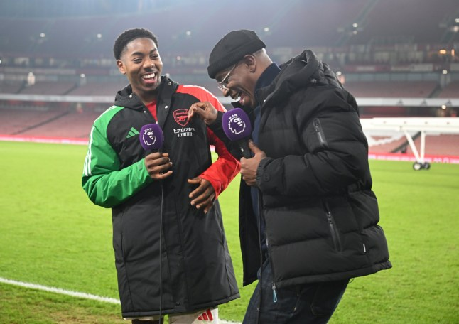 "Thomas Partey and Rio Ferdinand during a discussion"