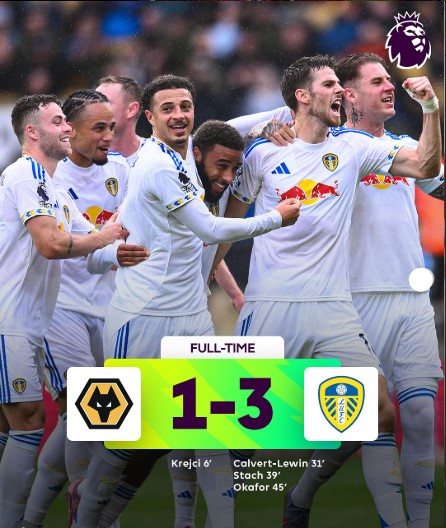 Leeds United, newly promoted, delivered a commanding 3-1 win over Wolves, who remain winless and rooted to the bottom of the table.