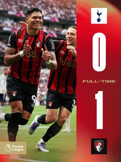 🍒 Bournemouth 1-0 Tottenham: Shock at Hotspur Stadium