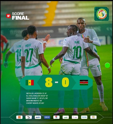 - Cherif Ndiaye (80′), introduced as a substitute, scored the seventh before a Kenyan own goal (90′) sealed the 8–0 humiliation.