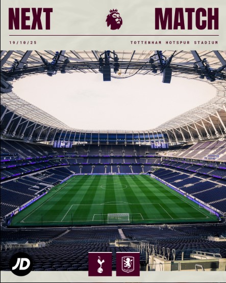 The Premier League returns with a thrilling encounter in North London as Tottenham Hotspur host Aston Villa in Matchday 8. Both sides are determined to make their mark — Spurs chasing a long-awaited title, and Villa looking to climb back into the top seven after a challenging start to the campaign.