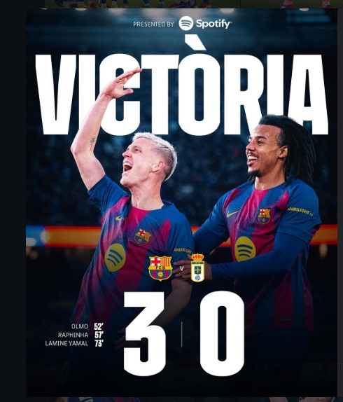 Barcelona’s 3-0 win over Oviedo was defined by brilliance, control, and a moment of magic from Lamine Yamal. With goals from Olmo, Raphinha, and Yamal, the Blaugrana sent a clear message to their title rivals.