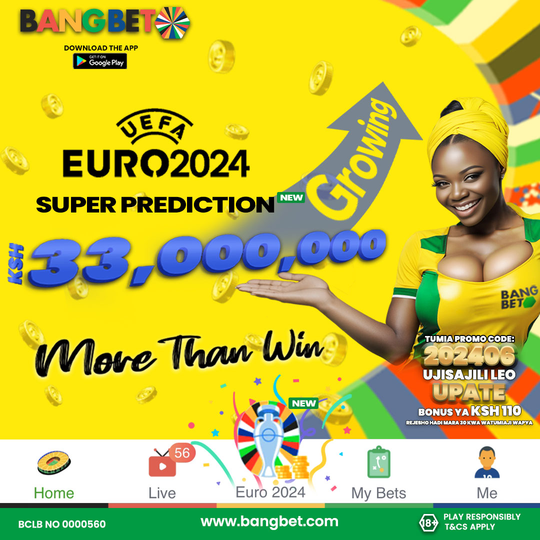 As UEFA Euro 2024 gears up, so does the excitement at Bangbet with our exhilarating Super prediction Jackpot! This is your chance to show off your football savvy and possibly score big. Whether you’re a seasoned football fan or a newcomer to the world of sports betting, our easy-to-navigate platform makes your betting journey smooth and thrilling.
