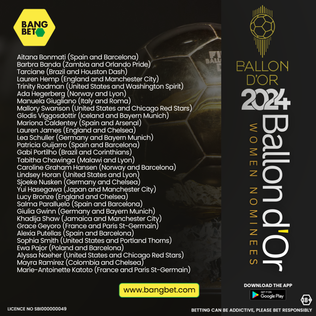 1. Aitana BonmatÃ: As the current holder, Aitana Bonmatà remains a strong candidate for the 2024 Women’s Ballon d’Or. Her performances for Barcelona and the Spanish national team have been outstanding, continuing her legacy as one of the world’s best female footballers.