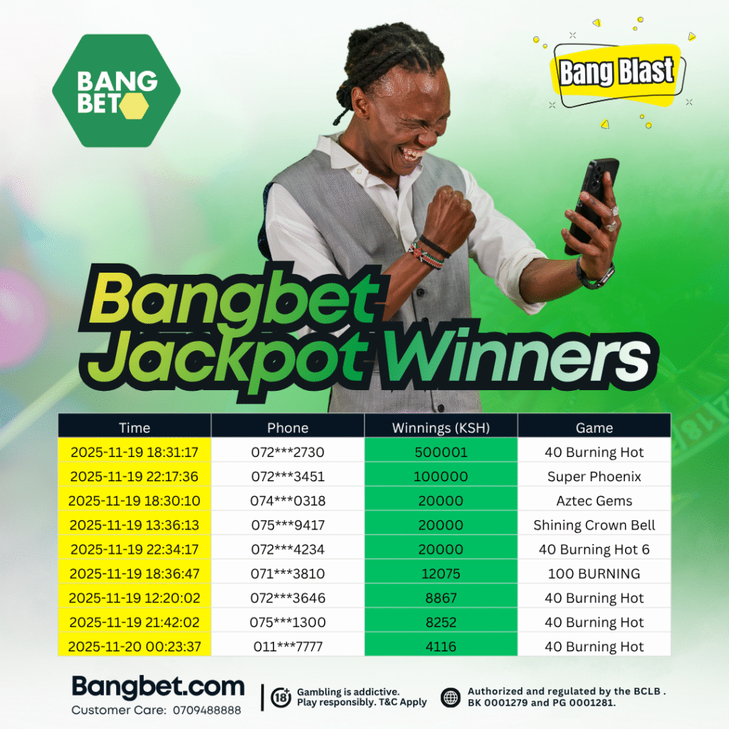 If you’re not yet playing on Bangbet, you’re missing out on daily opportunities to win big. With jackpots hitting KSh 500,000+, Mini wins dropping every hour, and exciting local-friendly games, Bangbet is the true home of Kenyan winners.