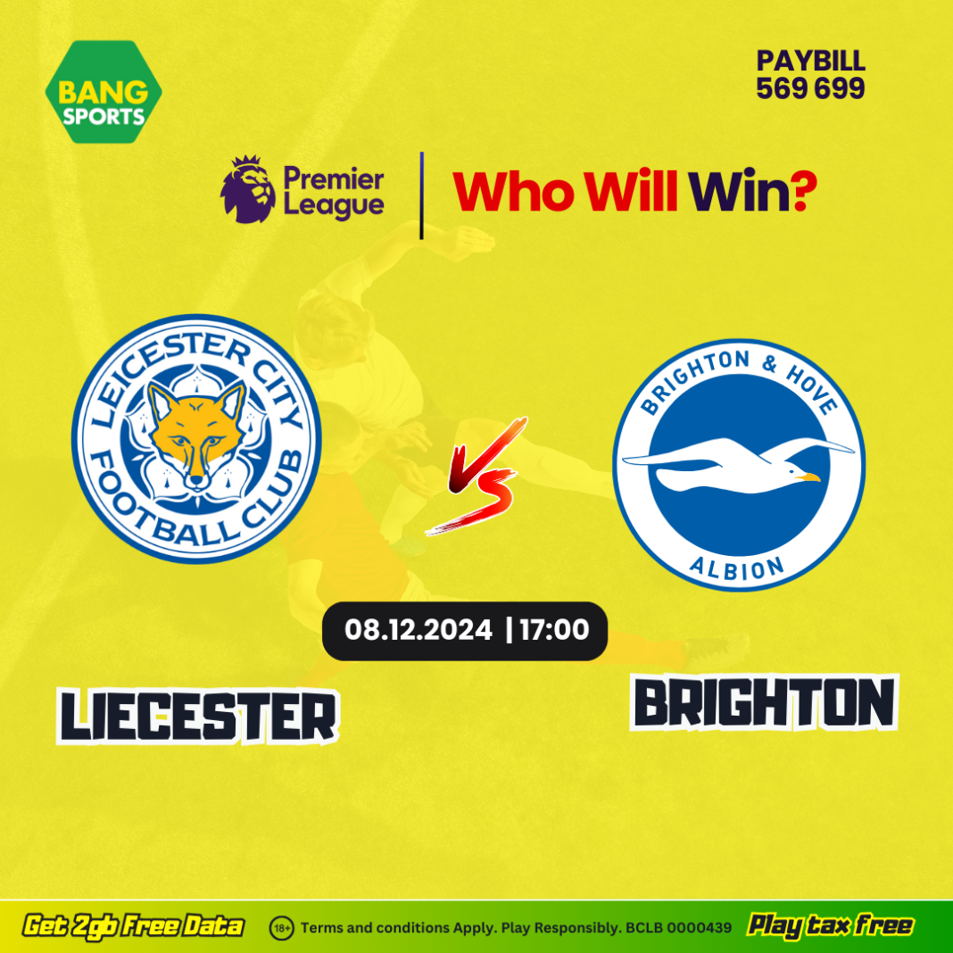 If you’re looking for a reliable and exciting platform to place your bets on the Leicester City vs. Brighton & Hove Albion match, look no further than BangSports! Known for its high odds and diverse betting options, BangSports provides a seamless experience for sports bettors, particularly in Kenya. Whether you’re a beginner or an experienced bettor, BangSports offers an easy-to-navigate interface and a wide variety of markets for all your football betting needs. Plus, their promotional offers and bonuses ensure you get the best value for your wagers.