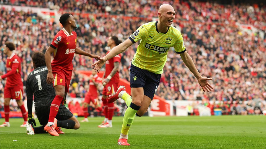 Despite Liverpool’s territorial dominance, their lack of sharpness in front of goal cost them dearly. In stoppage time, a defensive mishap between Virgil van Dijk and Alisson Becker gifted Southampton a shock lead. Will Smallbone pounced on the confusion and slotted home his first-ever Premier League goal, silencing the Anfield faithful.