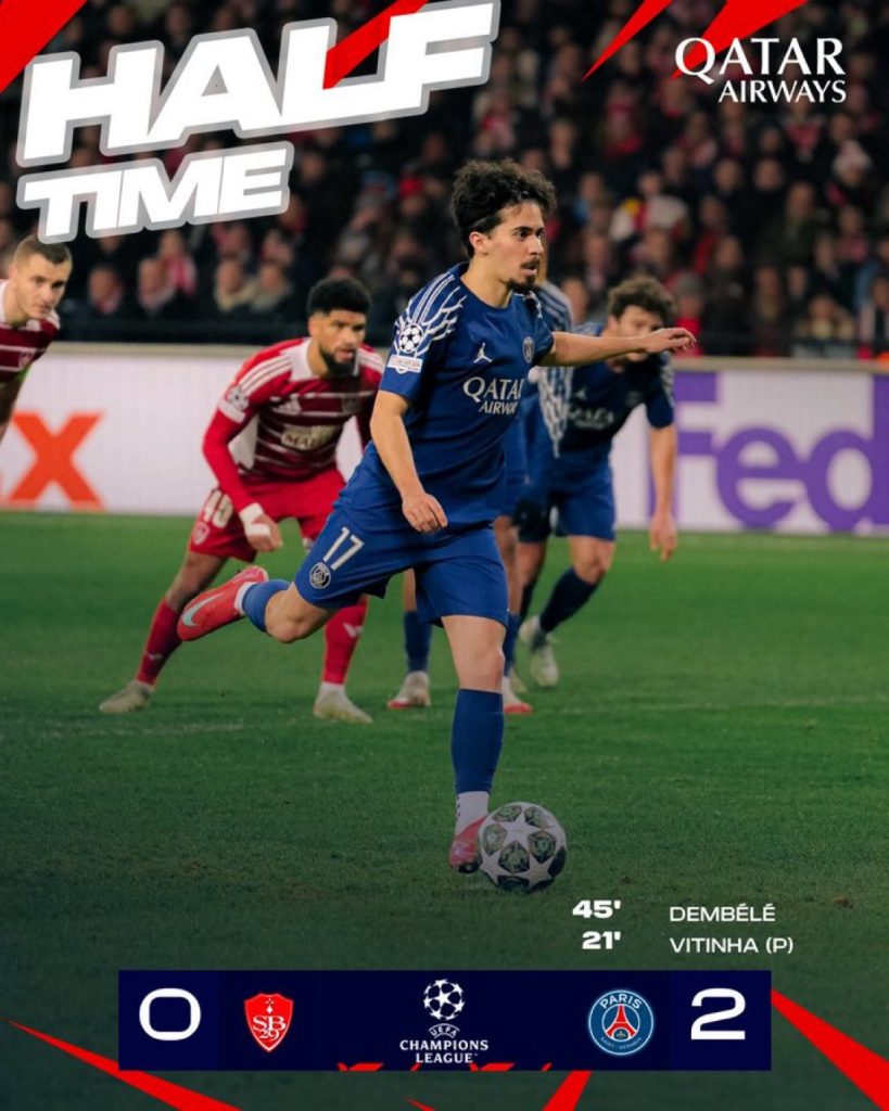 In his red-hot form, Ousmane Dembélé was once again the catalyst for PSG’s dominance. Just before halftime, the Frenchman took matters into his own hands, cutting inside from the right and blasting a left-footed strike past the Brest goalkeeper. His contribution effectively put PSG in control, leaving Brest with an enormous task in the second leg.