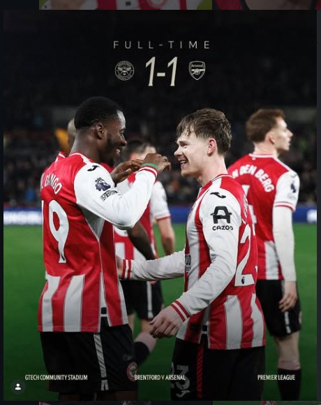 Arsenal’s Premier League title charge suffered a setback after a hard-fought 1-1 draw away at Brentford, trimming their lead at the summit to four points. In a match defined by physical battles, aerial duels, and tactical discipline, both sides showed why they are among the most difficult teams to face this season.