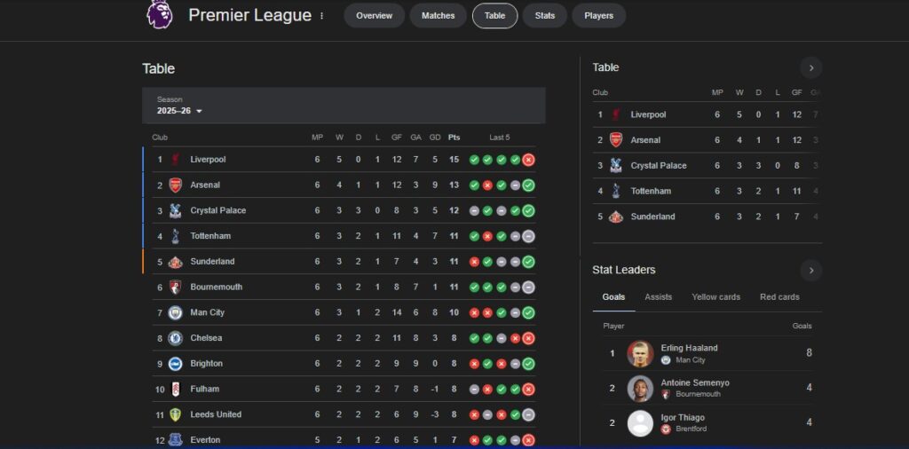 • Arsenal: This victory keeps the Gunners firmly in the title race. Sitting just two points behind Liverpool, Mikel Arteta’s side showed resilience and determination to secure a crucial away win.
