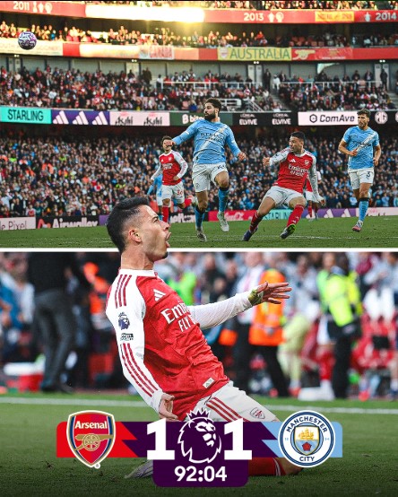 Arsenal salvaged a point against Manchester City in a thrilling Premier League encounter at the Emirates Stadium, with Gabriel Martinelli’s late equalizer denying City all three points.
