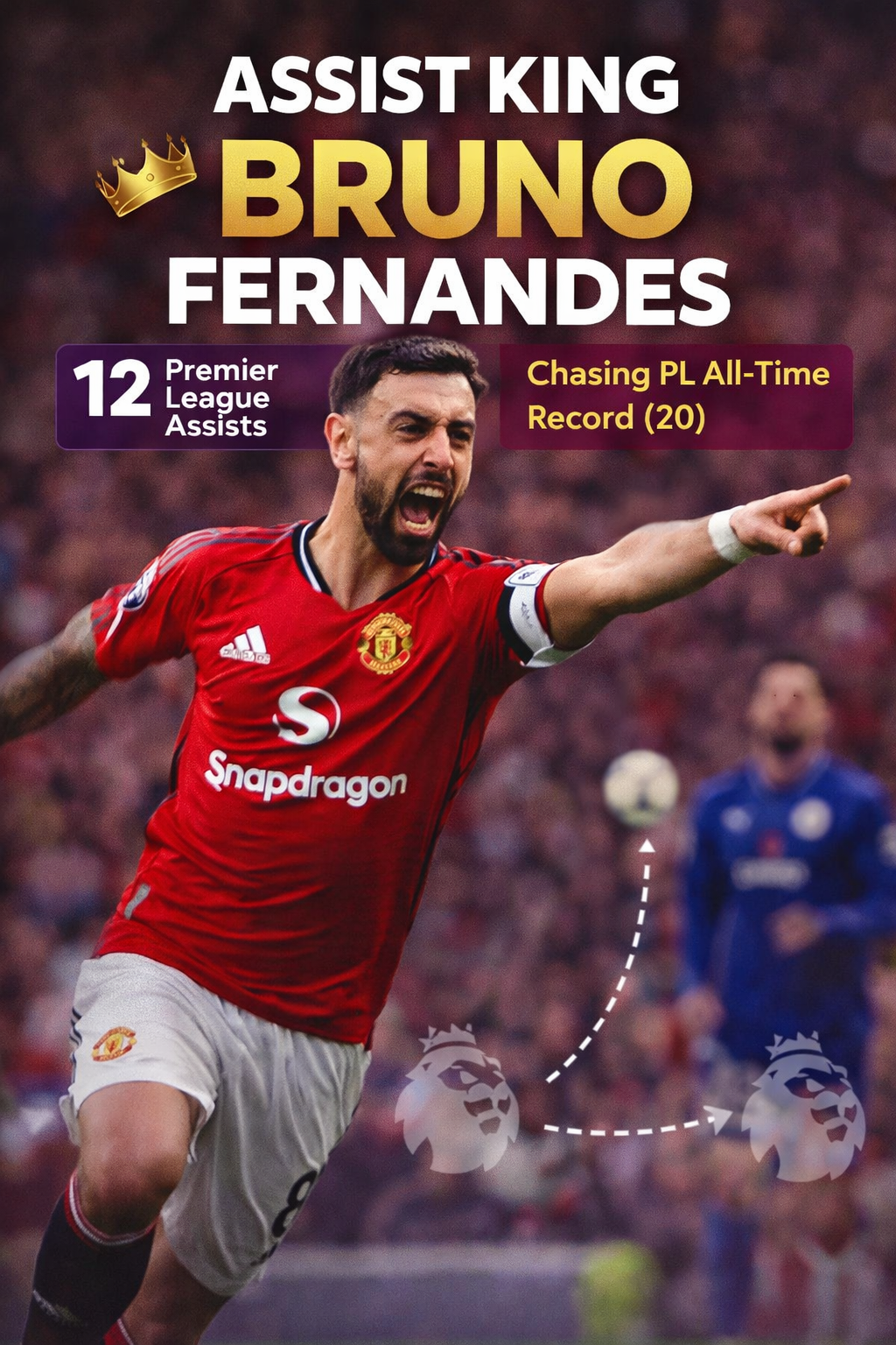 Assist King 👑. Once again, Bruno Fernandes is proving why he remains one of the most influential players in world football. With 12 Premier League assists already and 14 games still to play, the Manchester United captain is firmly on course to challenge the all-time Premier League assist record (20)—a landmark currently shared by Thierry Henry and Kevin De Bruyne.