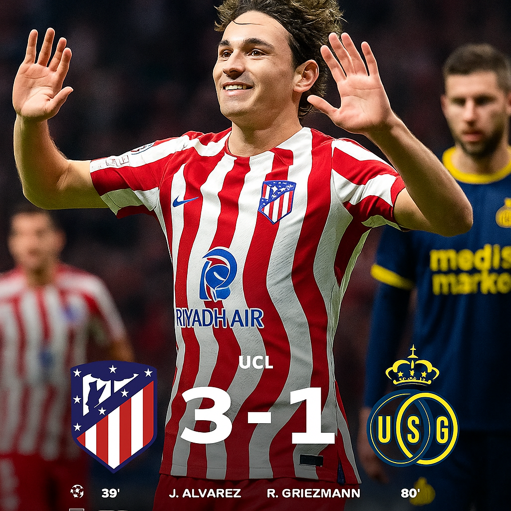 Atletico Madrid returned to winning ways in the Champions League with a powerful 3–1 victory over Union Saint-Gilloise, responding emphatically after their disappointing loss in the previous European outing. Backed by an electric home crowd, Atleti showed hunger, control, and clinical finishing — reigniting their Champions League ambitions.