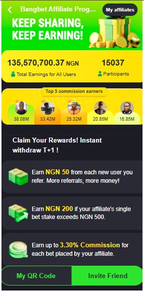 Bangbet offers specific commission structures tailored to residents in Nigeria, reflecting the local market dynamics. This transparency ensures affiliates understand exactly how their earnings are calculated.