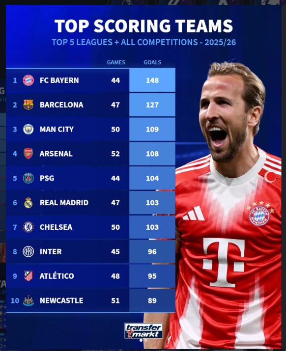 With 148 goals and counting, Bayern Munich isn’t just winning games; they are redefining modern attacking football. Whether they can turn this statistical “different level” into a historic trophy haul remains the biggest story of 2026.