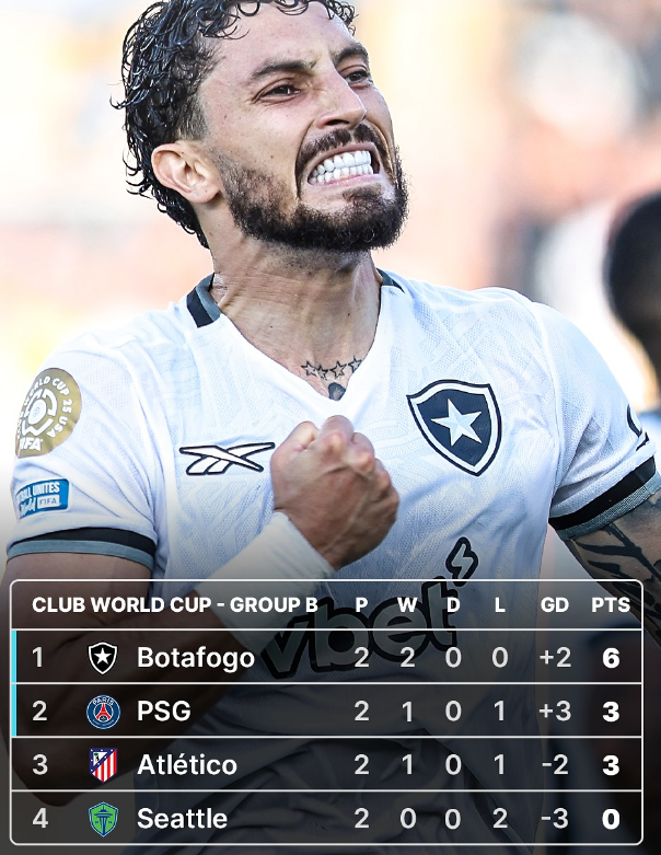 Despite PSG dominating possession with a staggering 74%, they struggled to break down Botafogo’s compact and disciplined defensive structure. The Brazilian side, who had already beaten Seattle Sounders in their opener, now sit atop Group B with six points from two matches.