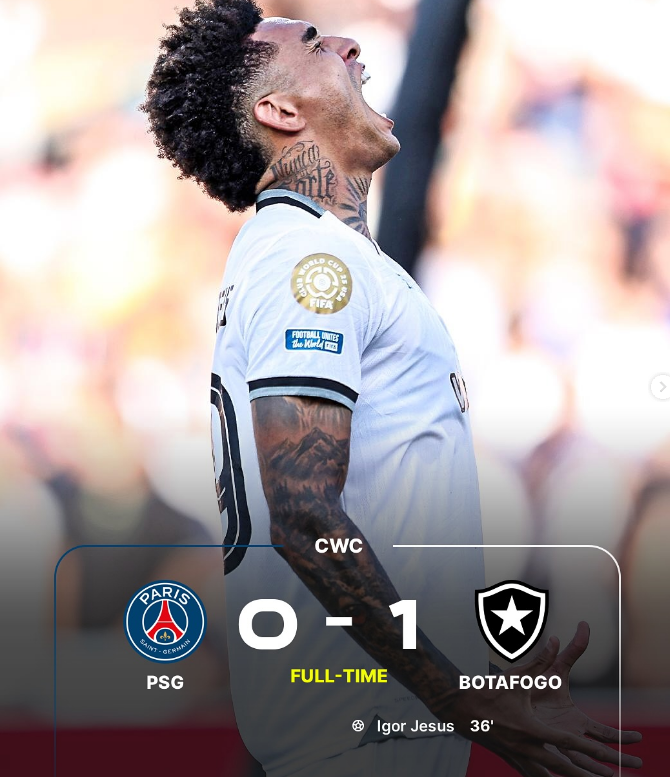 In one of the most shocking results of the 2025 FIFA Club World Cup so far, Brazilian giants Botafogo pulled off a tactical masterclass to defeat UEFA Champions League winners Paris Saint-Germain (PSG) 1-0 at the iconic Rose Bowl. The result sent shockwaves through Group B, just days after PSG had dismantled Atlético Madrid 4-0 in their opening match.
