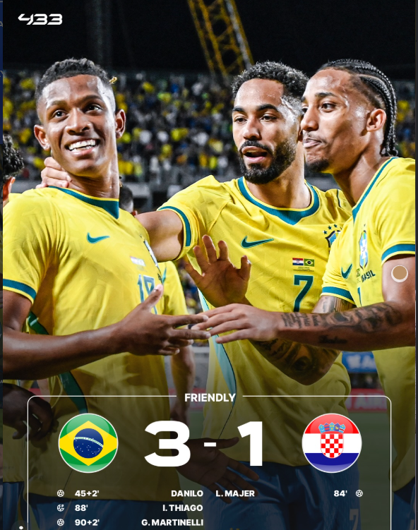 With goals from Danilo, Thiago, and Gabriel Martinelli, the Seleรงรฃo produced a confident display, while Croatia managed a late consolation through Lovro Majer.