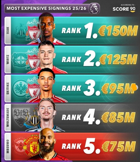 The English Premier League once again led the global transfer market, with Liverpool emerging as the top spender. The Merseyside giants made three of the five most expensive signings of the window, including a €150 million striker, a €125 million midfield maestro, and a €95 million forward—all aimed at revitalizing their attack and reclaiming domestic and European glory.
