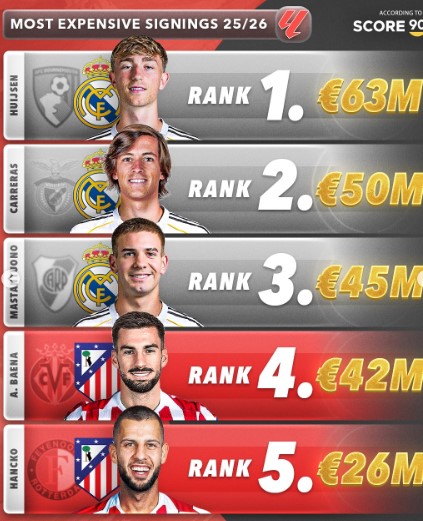 Atlético Madrid also made strategic moves, investing €45 million in a versatile midfielder and €26 million in a defensive asset. These signings suggest a tactical shift toward depth and flexibility, as both Madrid clubs prepare for intense domestic and European campaigns.