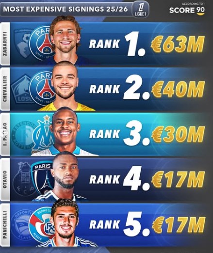 Paris Saint-Germain led Ligue 1’s spending, focusing on defensive solidity and goalkeeping upgrades. Their €63 million investment in a commanding center-back and a €40 million deal for a top-tier goalkeeper highlight their intent to build from the back.