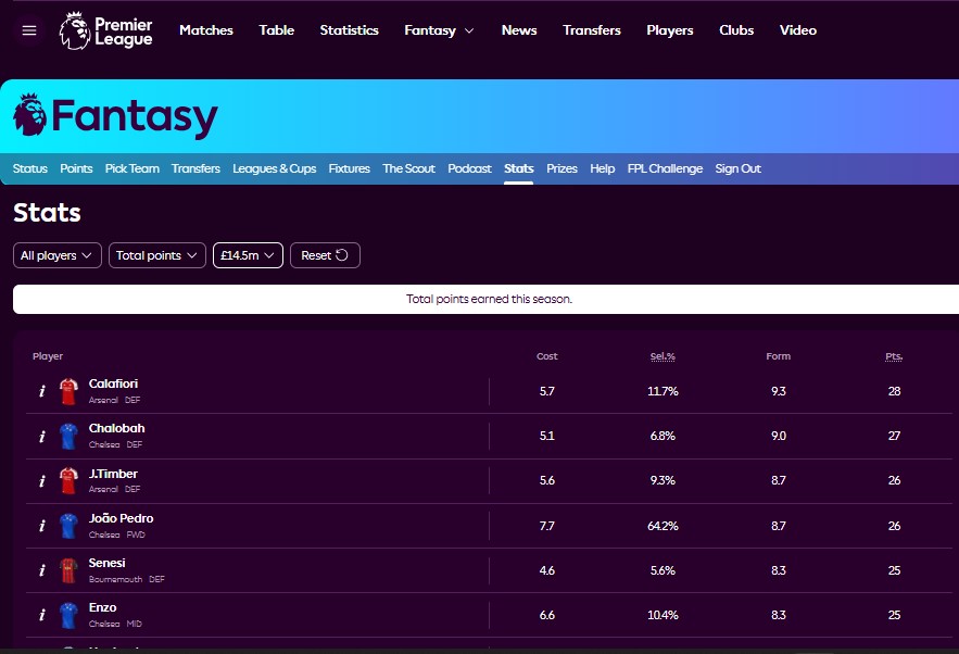 Managers score points each week based on their players’ real-life performances in the Premier League, with key highlights including: