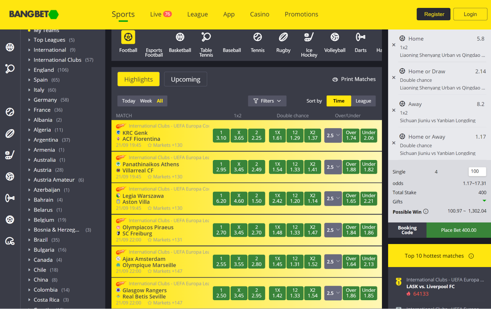 Odds indicate the likelihood of an outcome occurring and the potential payout if you bet on that outcome. In most betting websites in Kenya including Bangbet, they are expressed as decimals such as 1.75, 3.30 and so on. The higher the number, the higher the money one is likely to win but the lesser the chance of the team with the high odds winning.