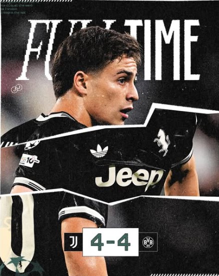 The UEFA Champions League 2025/26 served up an instant classic as Juventus and Borussia Dortmund played out a dramatic 4-4 draw in Turin. In a game filled with twists, momentum shifts, and late drama, Juventus pulled off a miraculous comeback deep into stoppage time, leaving fans breathless and proving once again why the Champions League is football’s grandest stage.