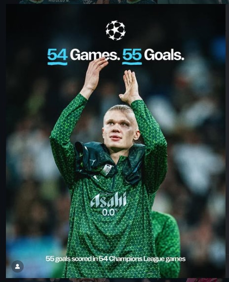 A City attack forced a penalty, and Erling Haaland stepped up with ice in his veins. His 43rd-minute spot-kick gave City the lead—and ultimately the win. The Norwegian superstar has now accumulated 55 UCL goals in just 54 matches, an astonishing record that places him among the legends of the competition.
