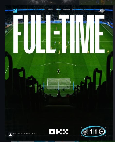 City eventually broke the deadlock in the 41st minute through Erling Haaland, who calmly converted from the penalty spot. The spot-kick came after a chaotic goalmouth scramble inside Brighton’s box, with the visitors unable to clear their lines.