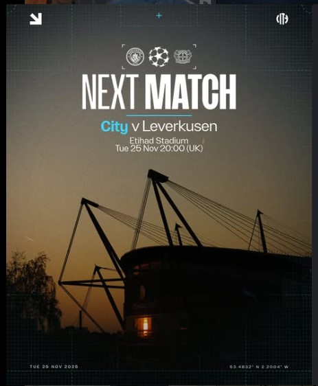 Manchester City return to Champions League action on Tuesday, 25 November 2026 at 20:00 (UK) as they host Bayer Leverkusen at the Etihad Stadium for Matchday 5. With City in electric form and Leverkusen struggling to find consistency in Europe, this fixture promises goals, intensity, and a major milestone for Pep Guardiola.