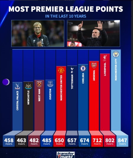 City and Liverpool have outperformed every other Premier League club by a massive margin—another sign of their sustained excellence.