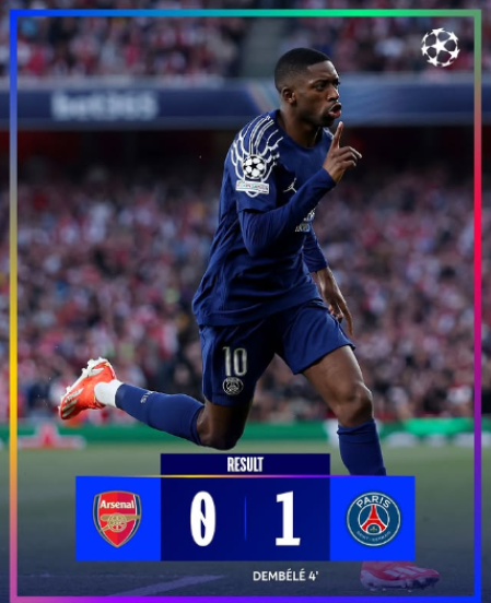 Paris Saint-Germain took a crucial step forward in their European campaign with a narrow 1-0 win over Arsenal, thanks to an early goal from Ousmane Dembélé and a disciplined defensive performance. The clash, filled with tension and drama, also saw Arsenal’s equalizer ruled out by VAR adding to the frustration for Mikel Arteta’s side.