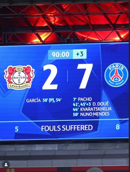 - Final Score: Bayer Leverkusen 2โ7 Paris Saint-Germain