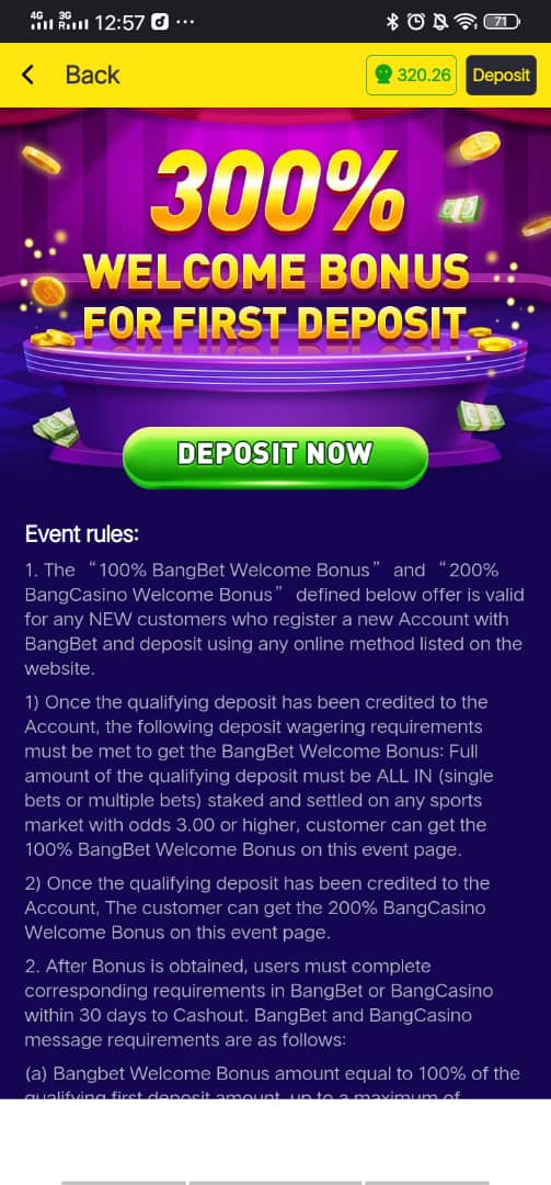 View of Bangbet Sports Bonus and Casino Bonus